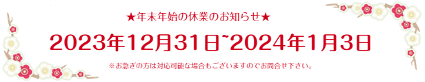 2023年12月31日~2024年1月3日までお休みさせて頂きます。