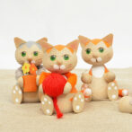 ハンドメイドのぬくもりが詰まった木製の猫の置物。